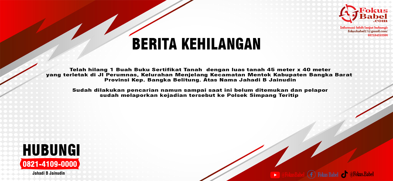 BANGKA BARAT,www.fokusbabel.com–Setelah hampir sepekan hilang kontak, dua nelayan asal Pangkalpinang, Agus (68) dan Cici (19),…