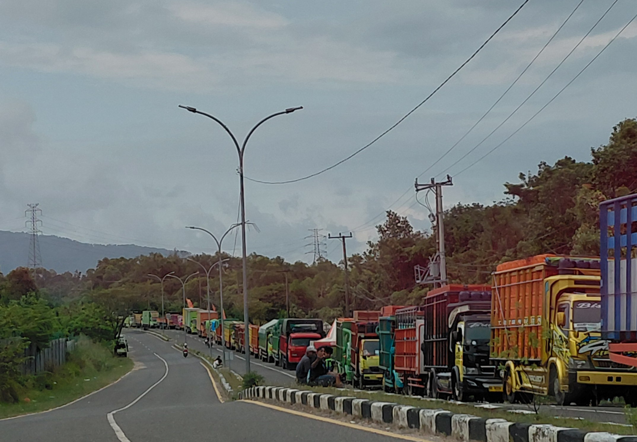 Berdasarkan pantauan di lokasi, antrean kendaraan jenis truk dan truk sumbu tiga bahkan terlihat mengular di sepanjang jalan menuju Pelabuhan Tanjung Kalian dengan panjang mencapai ratusan meter.